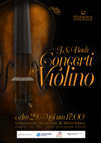 Am 29. Mai kommt das renommierte 14-köpfige Ensemble „Harmonie Universelle“ aus Köln und spielen für Sie vier der schönsten Violinkonzerte von J. S. Bach: