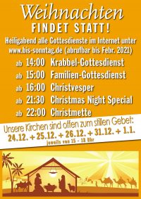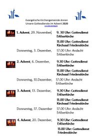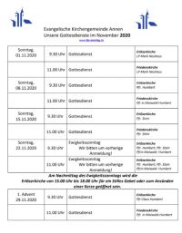 Aufgrund der derzeitigen Situation haben sich die Gottesdienstzeiten geändert. Wir bitten dieses zu berücksichtigen…. GoDiPlan November V2- 2020 als PDF zum Download